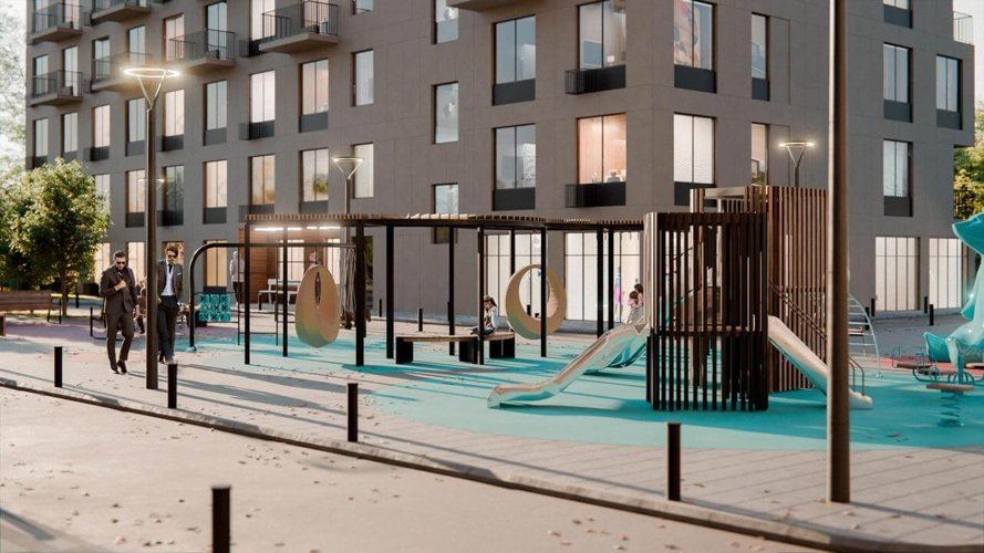 Архитектура жилого комплекса выполнена в минималистичном и современном дизайне