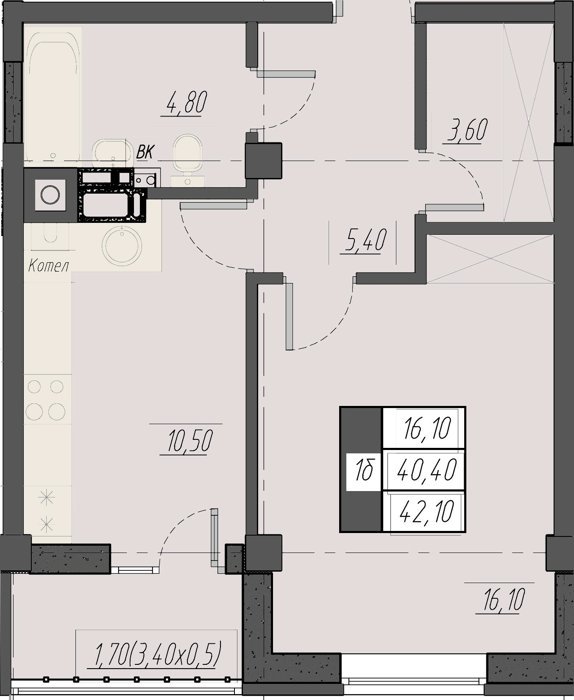Площадь от 40.7 м2