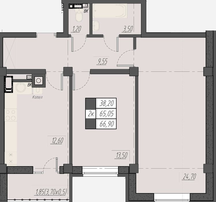 Площадь от 61.15 м2