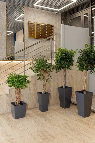 Фасады и входные группы очень стильные и лаконичные, функциональны для всех жильцов. Просторный холл, в котором оборудованы места для велосипедов и колясок, а также места для отдыха и встреч.