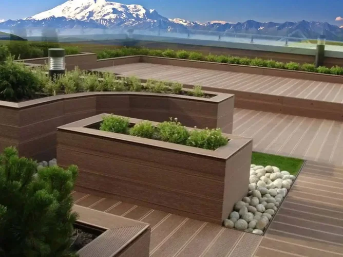 Важной особенностью комплекса является наличие эксплуатируемых крыш, откуда открывается незабываемый вид. И озеро, и парк, и горы, и окрестные дома – все как на ладони! Это место отдыха и релаксации!